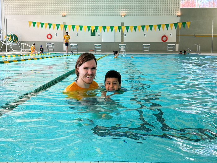 Our low-ratio group swim lessons (1:4) allow us to ensure personalized attention in the group setting and a supportive environment for skill development and water confidence.